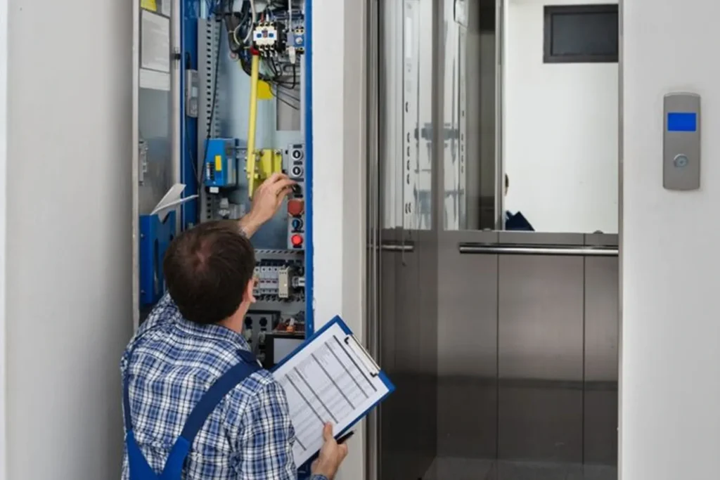 وصيانة المصاعد الكهربائية والهيدروليكية ومصاعد المطاعم ، وتأمين قطع الغيار